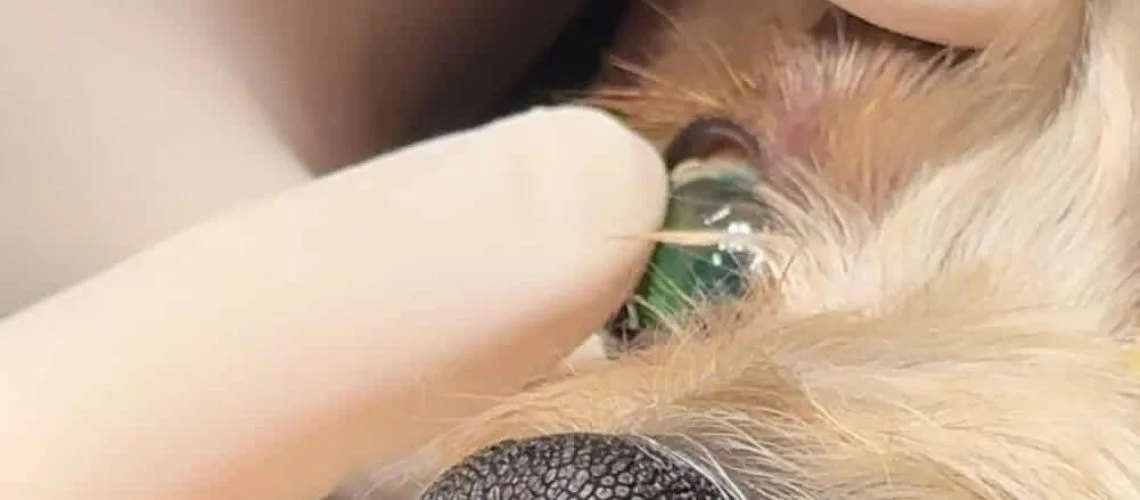 At Stellar Vets in Littlehampton we can use a contact lens to act like a protective bandage for the front of the eye, called the cornea, if it gets damaged.